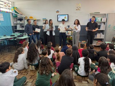 Na tarde de quinta-feira, 06/11, a Escola Municipal Ângelo Falavinha Dalprá, recebeu os acadêmicos da Universidade UniDomBosco para apresentação do Projeto de Extensão Integrado II, com o objetivo de uma tarde de aprendizado e diversão com a turma do 4º ano B. O encontro fez parte de uma ação de sensibilização sobre o desperdício de alimentos, um tema essencial para a formação de cidadãos mais conscientes e responsáveis.