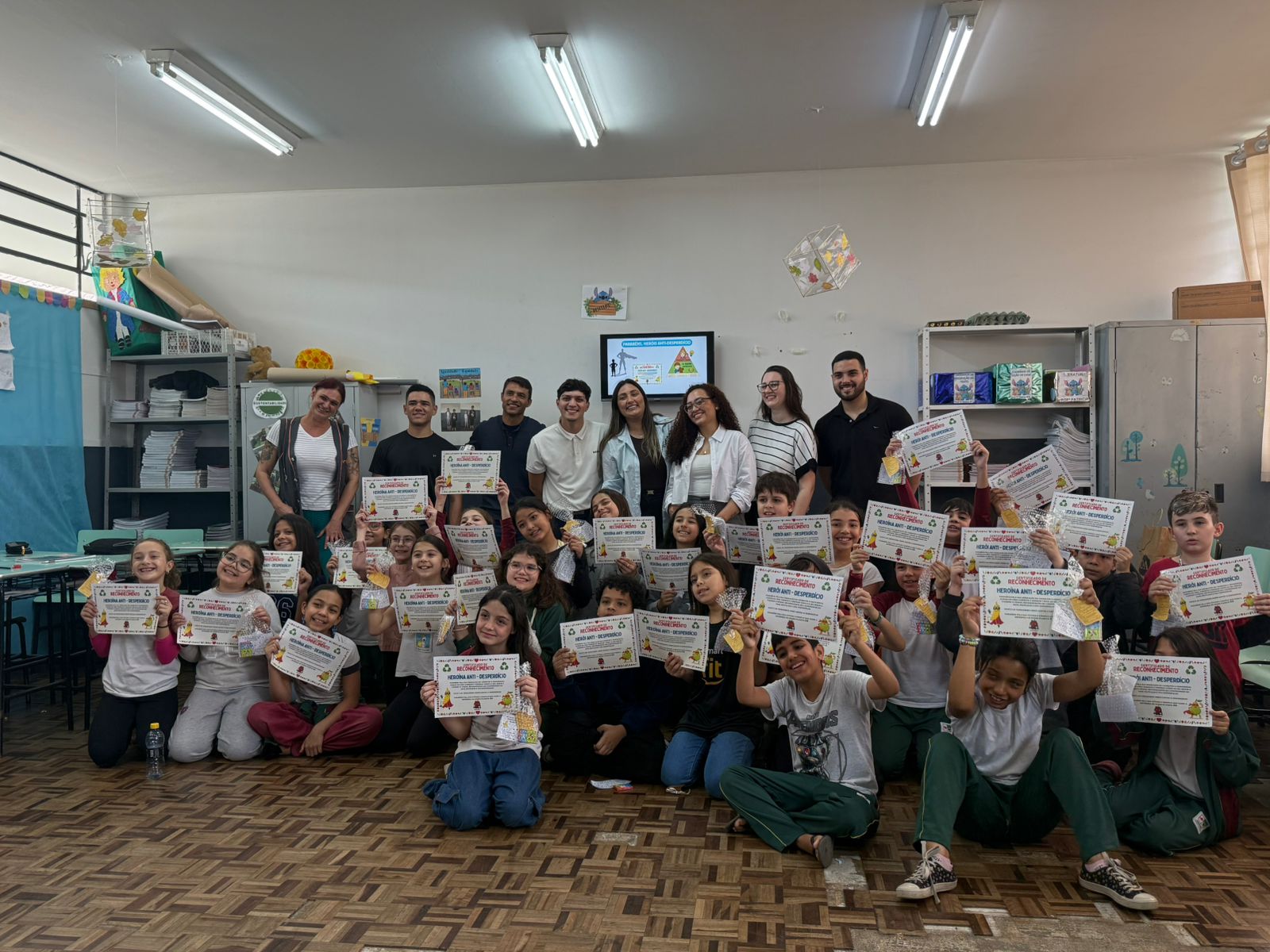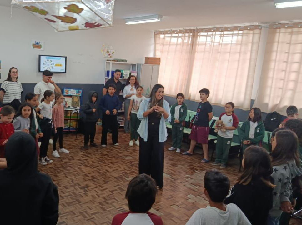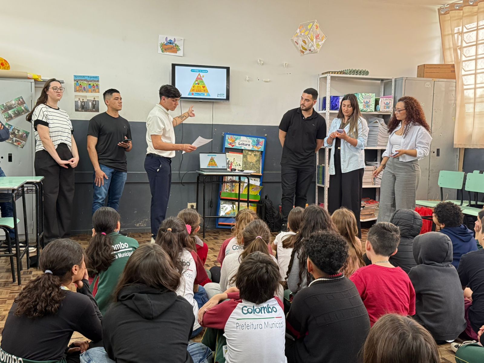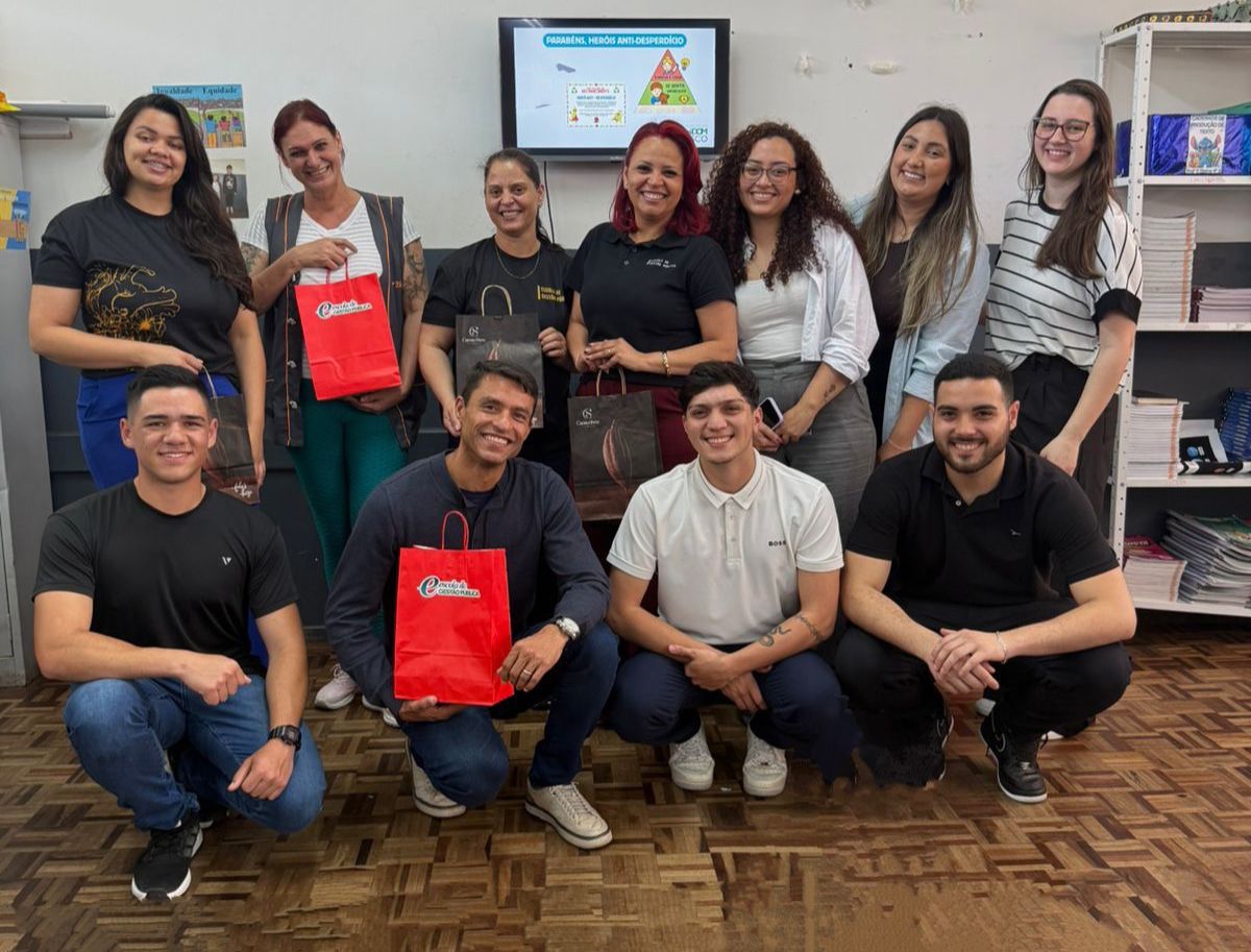 Na tarde de quinta-feira, 06/11, a Escola Municipal Ângelo Falavinha Dalprá, recebeu os acadêmicos da Universidade UniDomBosco para apresentação do Projeto de Extensão Integrado II, com o objetivo de uma tarde de aprendizado e diversão com a turma do 4º ano B. O encontro fez parte de uma ação de sensibilização sobre o desperdício de alimentos, um tema essencial para a formação de cidadãos mais conscientes e responsáveis.
