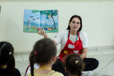 A ação é voltada às crianças dos Centros Municipais de Educação Infantil e tem o propósito de despertar o interesse pela leitura de forma lúdica. A primeira turma a participar foi a do Infantil 5H do CMEI Espaço da Criança, com 11 alunos que se encantaram com as histórias e participaram com muito entusiasmo das atividades.