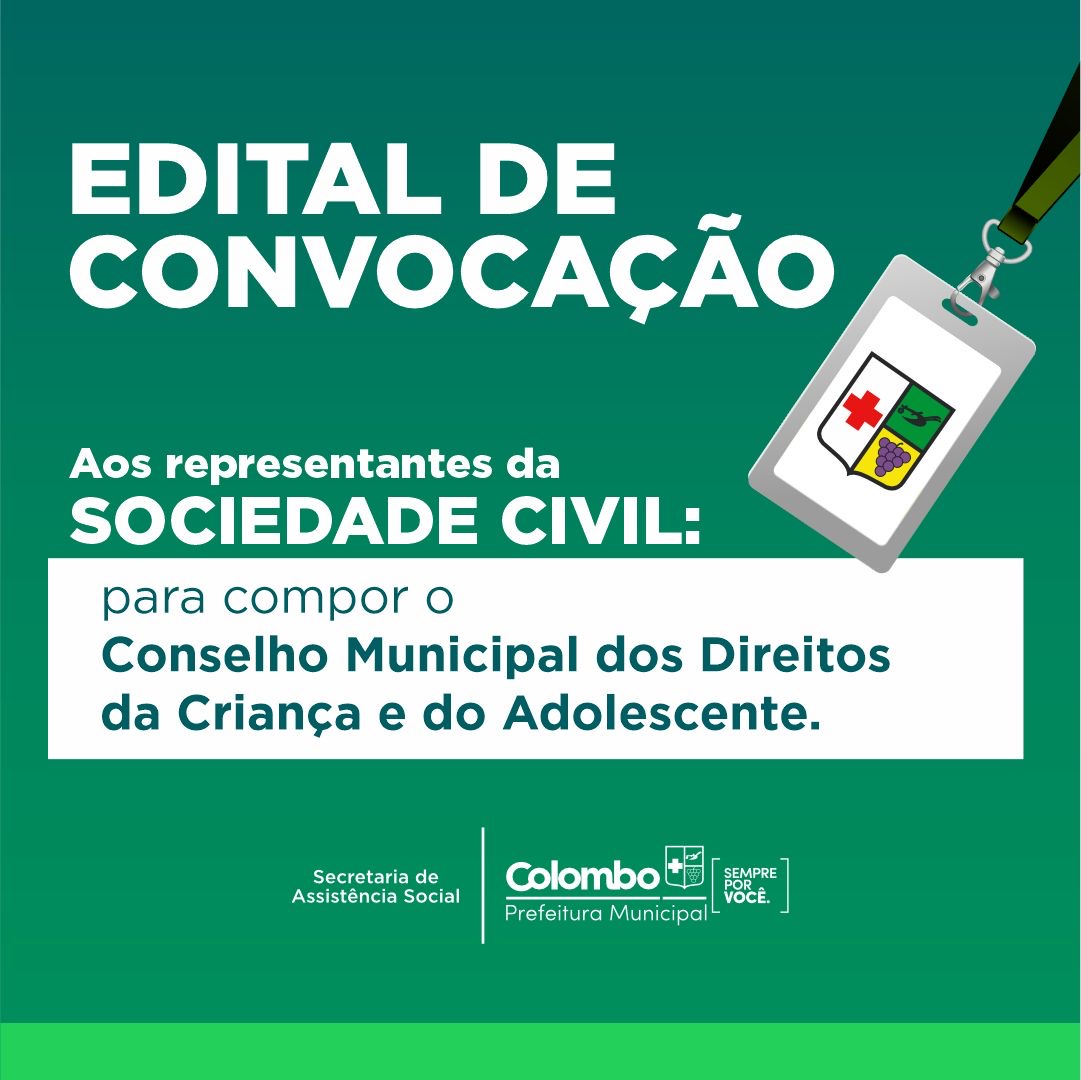 O Conselho Municipal dos Direitos da Criança e do Adolescente de Colombo (CMDCA) divulgou o Edital de Convocação nº 01/2025, convocando a sociedade civil para o Fórum de Eleição dos representantes que irão compor o conselho no biênio 2025/2027.