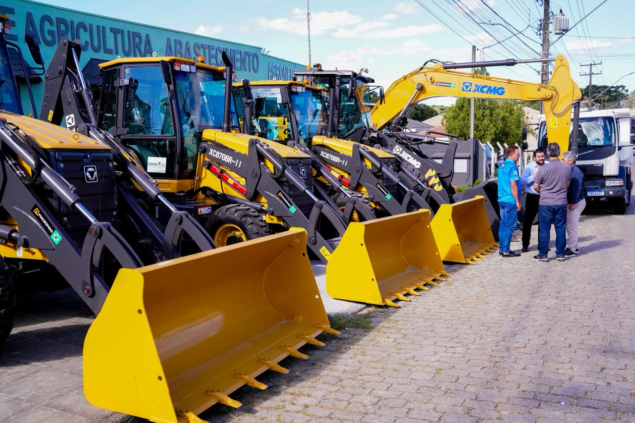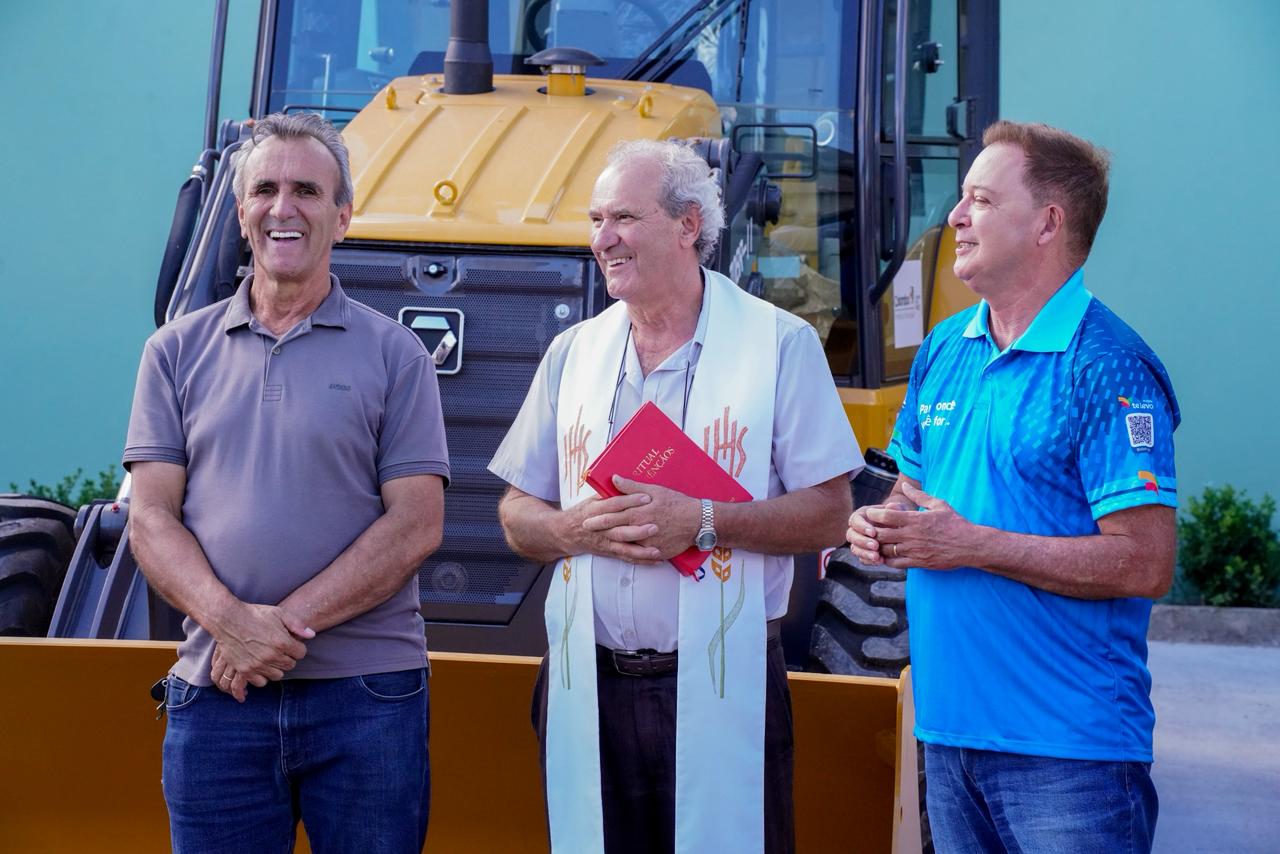 Foram entregues um caminhão, uma pá carregadeira, três retroescavadeiras e uma escavadeira, que vão garantir mais agilidade e eficiência nos serviços realizados nas áreas rurais e urbanas.