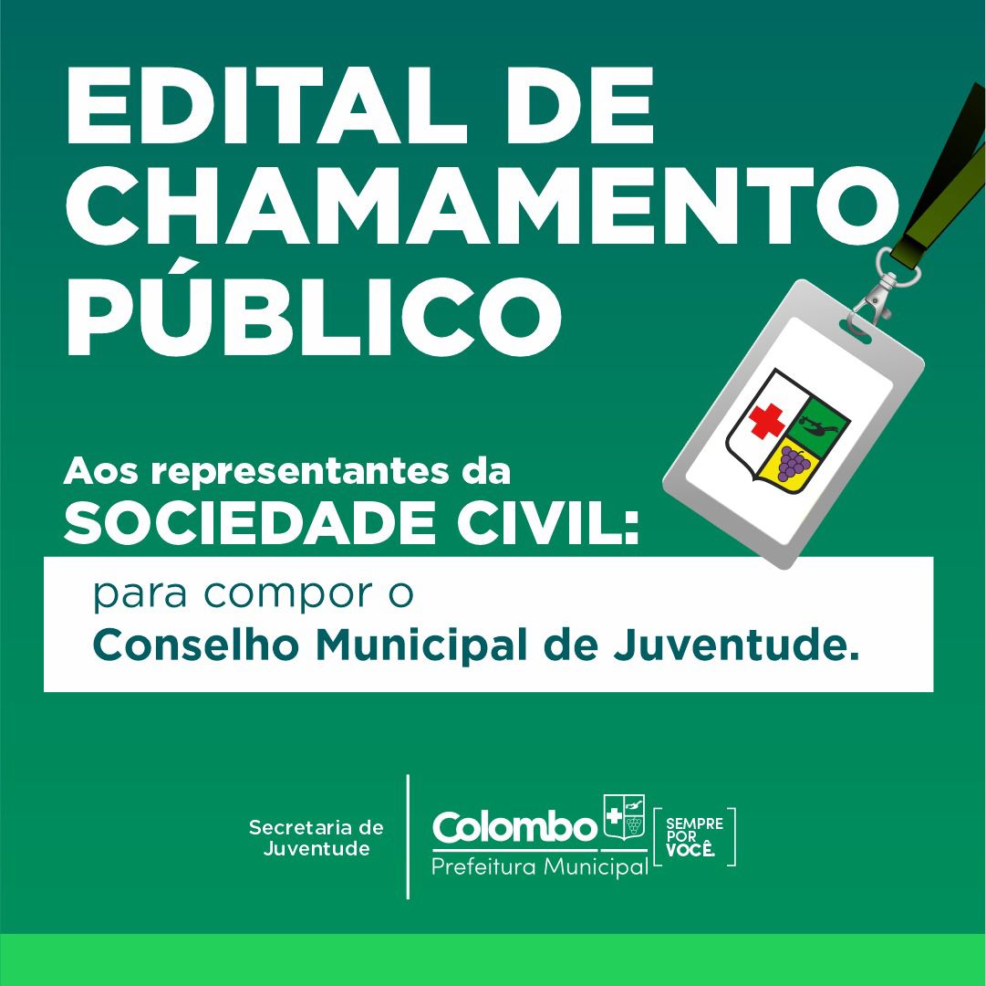 A Prefeitura de Colombo, por meio da Secretaria Municipal de Juventude, publicou o Edital de Chamamento nº 01/2025, que abre o processo de escolha dos representantes da sociedade civil para compor o Conselho Municipal da Juventude.