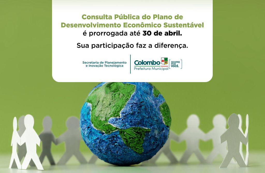 A Prefeitura de Colombo prorrogou até o dia 30 de abril o prazo para participação na Consulta Pública que vai atualizar o Plano de Desenvolvimento Econômico Sustentável do município.