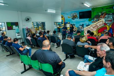 A formação, que vai durar seis meses, reúne 38 participantes, entre equipe administrativa, assistentes de alunos, motoristas, monitores e colaboradores da empresa terceirizada Costa Oeste.