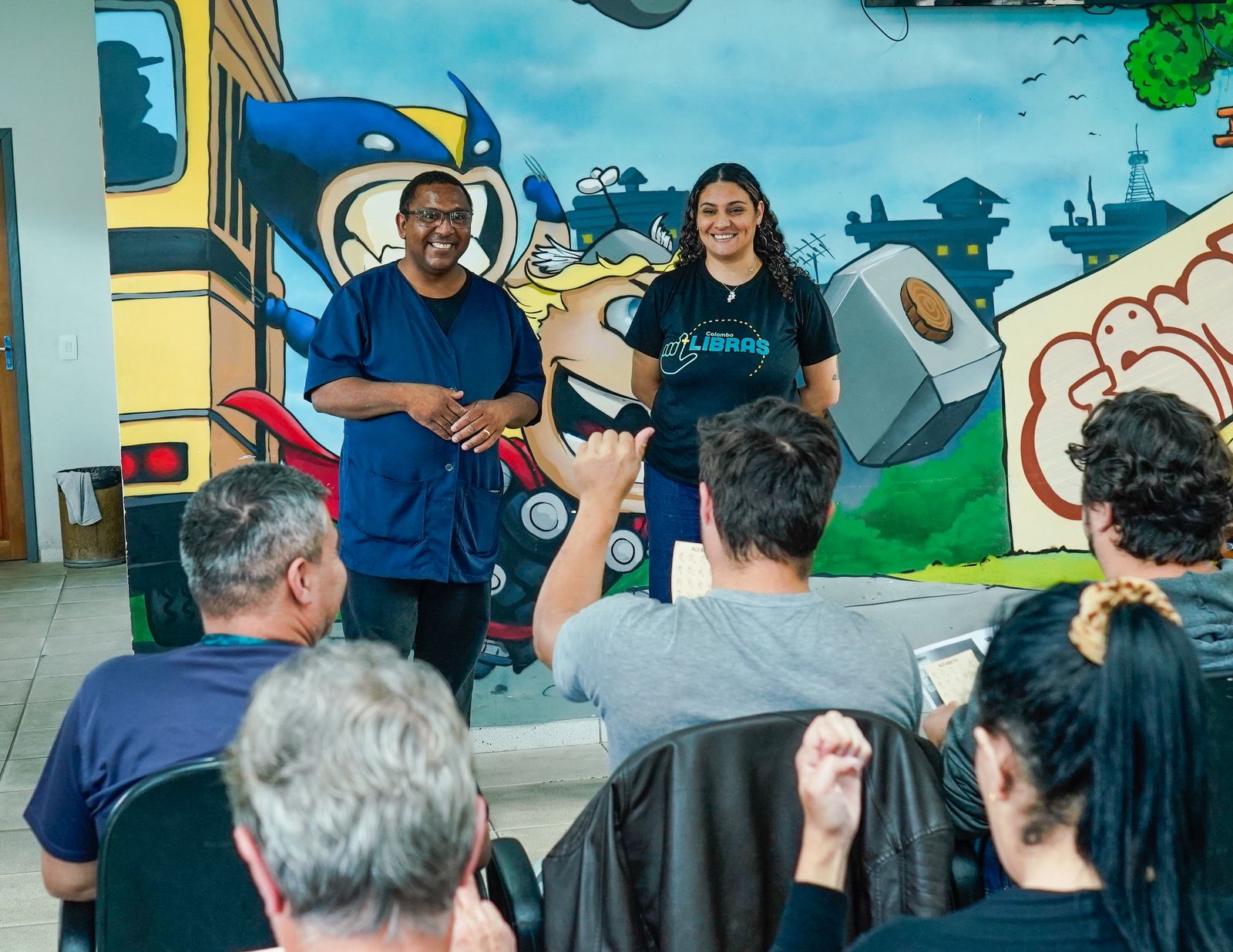 As aulas são totalmente práticas e acontecem semanalmente com o professor Josué Lucindo, educador experiente e referência na área da Língua Brasileira de Sinais.