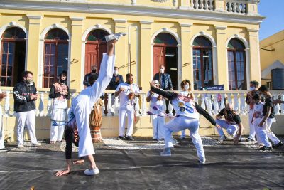 Na tarde desta terça-feira (03), o Departamento de Cultura organizou um evento para celebrar o Dia Nacional do Capoeirista, que contou com a presença do Prefeito Helder Lazarotto, o Vice-prefeito Professor Alcione e do Secretário de Administração Ademir Garcia.