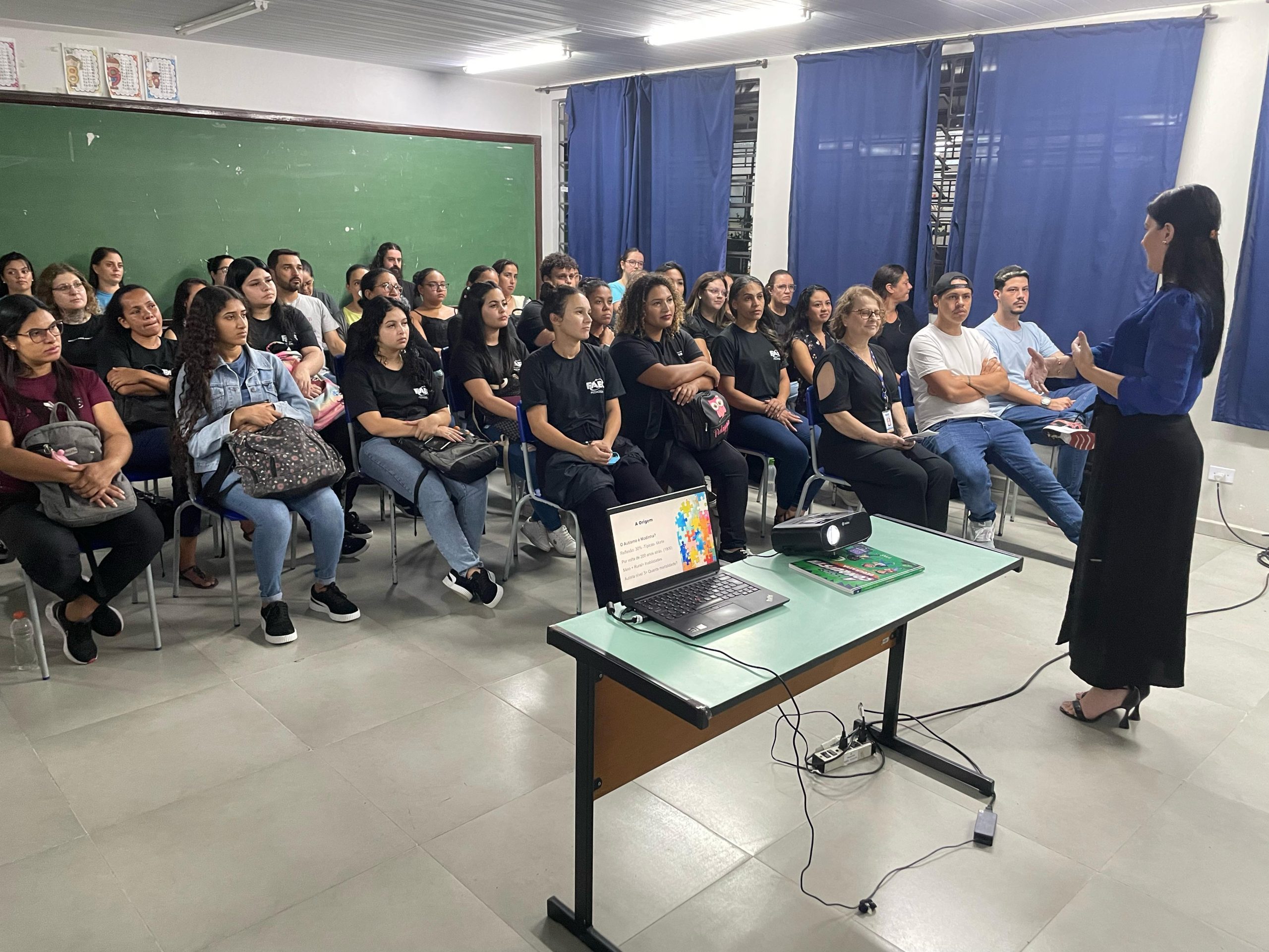 O momento formativo reuniu acadêmicos dos cursos de Pedagogia e Psicologia, proporcionando um espaço essencial para reflexão e aprendizado sobre a neurodiversidade.