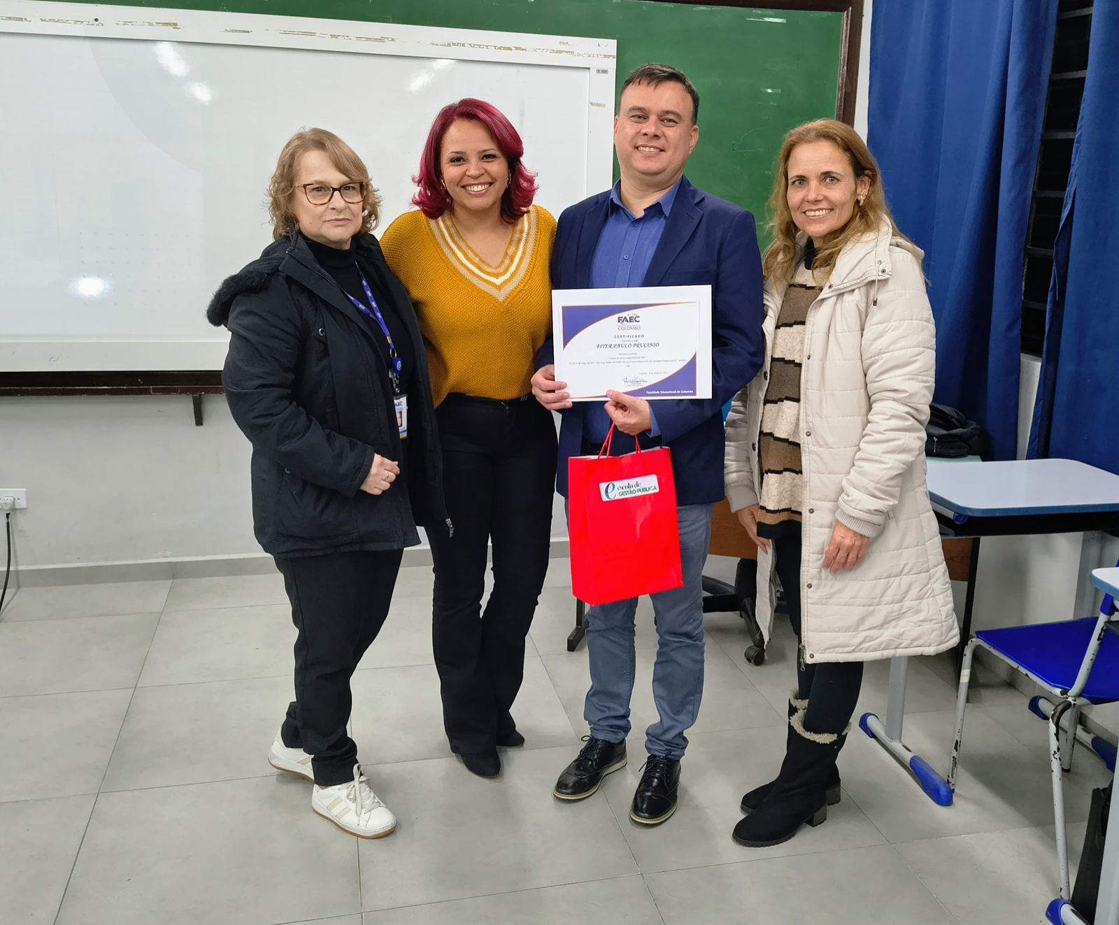 A Escola de Gestão Pública agradece a Elzira Verginia, Diretora Geral e a Luciana Sudickum Raymundo, Coordenadora Geral pela parceria e se coloca a disposição enquanto Departamento da Secretaria de Administração da Prefeitura Municipal de Colombo.