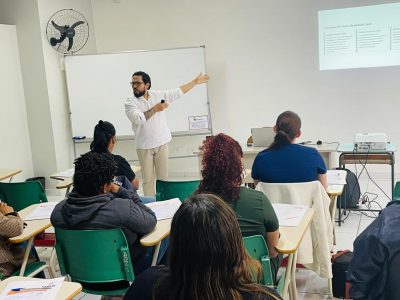 A formação foi conduzida pelo instrutor Alex Mendes de Lima, enfermeiro pela Universidade Estadual do Pará, especialista em Enfermagem Dermatológica, com ampla experiência em Clínica e Gestão na área de Saúde Mental — CAPS e Unidade de Terapia Intensiva (UTI). Atualmente, Alex atua como instrutor de Educação Profissional no SENAC Paraná e foi colaborador da Comissão Temática de Saúde Mental do COREN-PR no biênio 2019/2020.