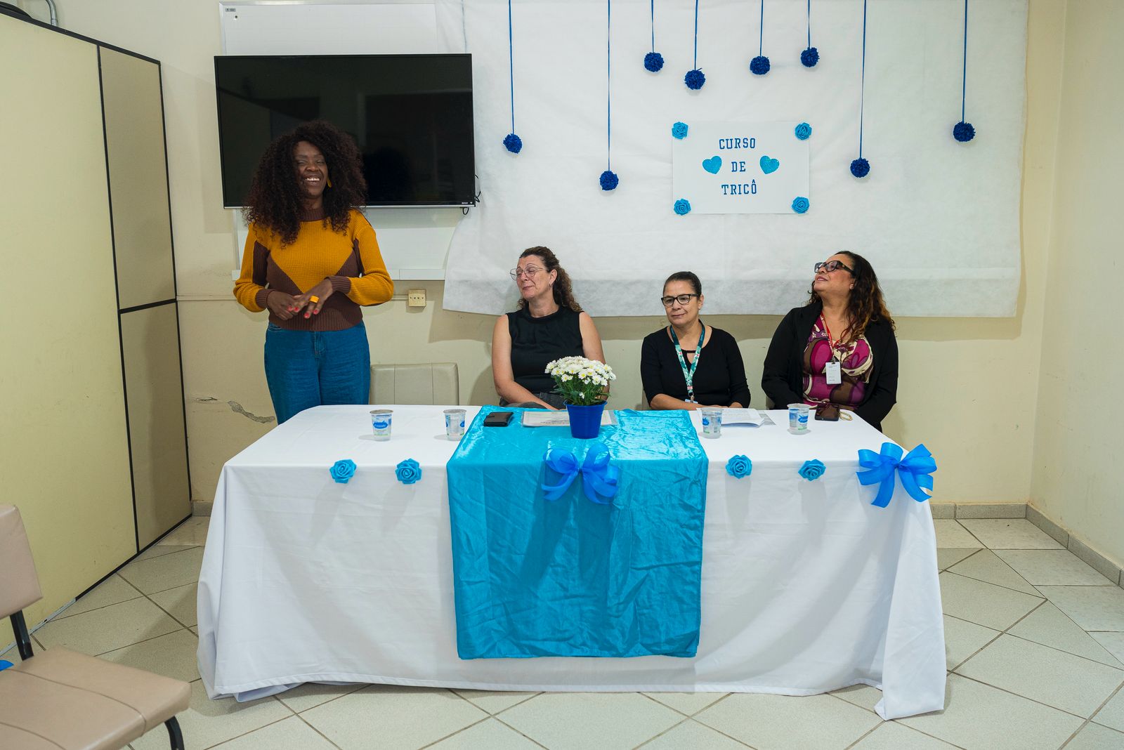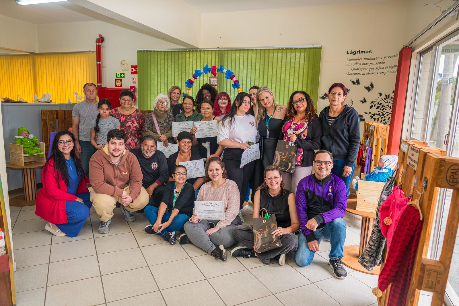 A ação formou 15 novas tricoteiras em Colombo e para encerrar as aulas foi feita uma exposição dos trabalhos produzidos