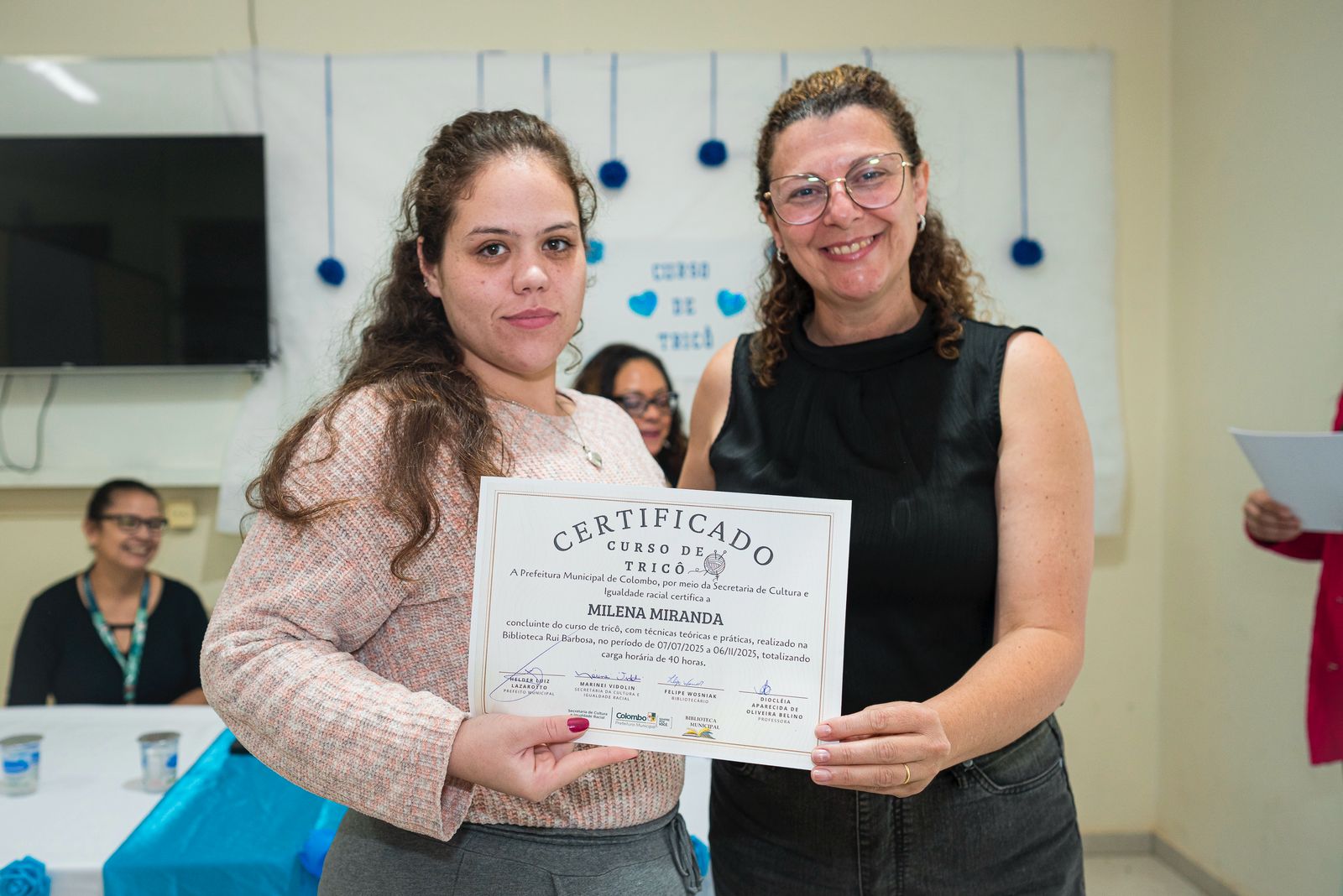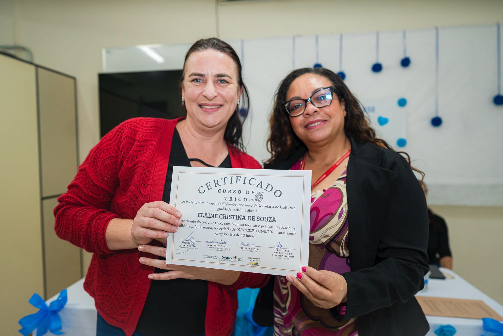 Durante o último trimestre de 2025, a Prefeitura, por meio da Secretaria de Cultura e Igualdade Racial, promoveu o Curso de Tricô para Iniciantes. As aulas gratuitas foram realizadas na Biblioteca Pública Municipal Rui Barbosa e ministradas pela Professora Diocleia.