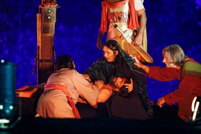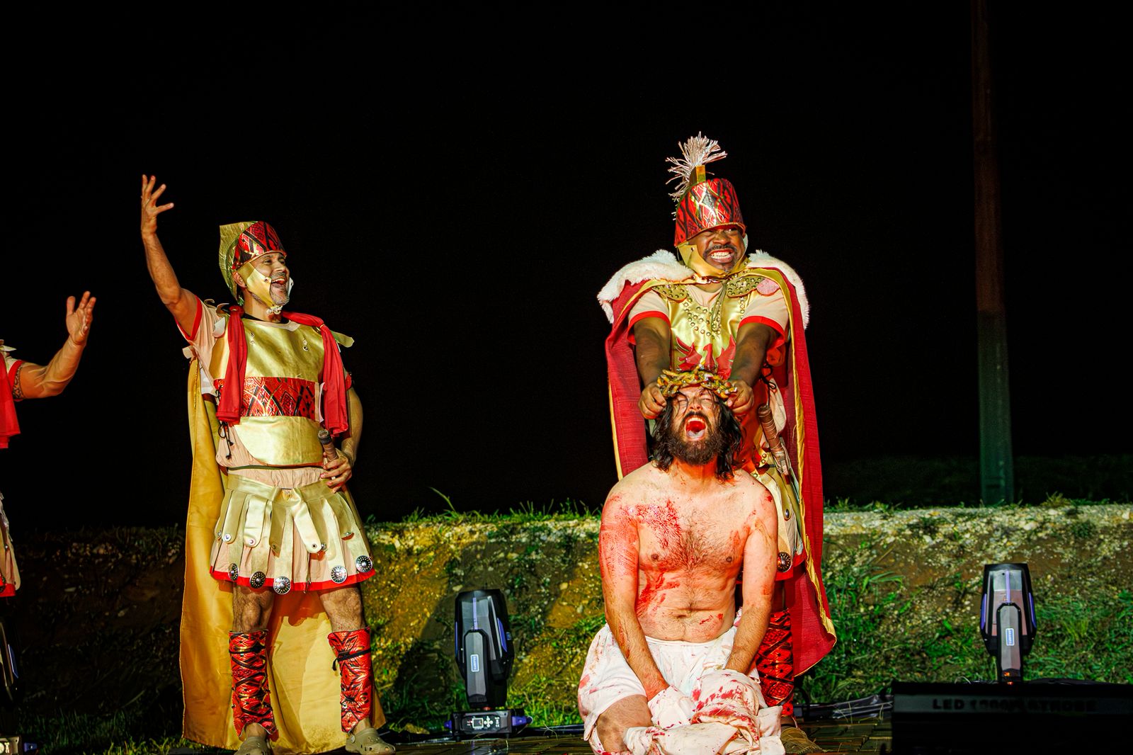 Com cerca de 130 voluntários, o espetáculo deu vida à maior história de amor de todos os tempos — da anunciação aos milagres, da dor à esperança, da cruz à ressurreição.
