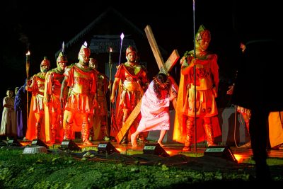 Entre eles, a cena da ressurreição, realizada no meio do bosque, envolveu o público em uma experiência única, onde natureza e fé se encontraram em um dos instantes mais emocionantes da noite.