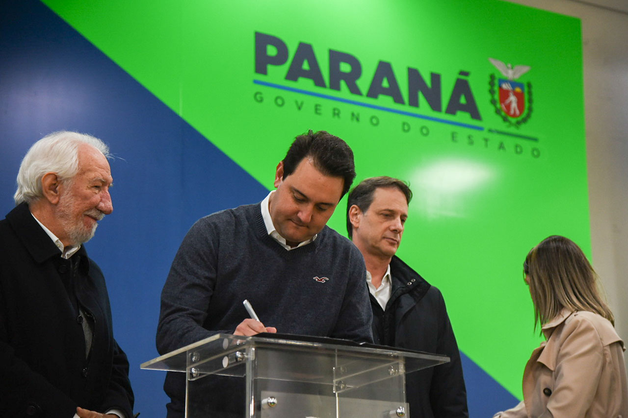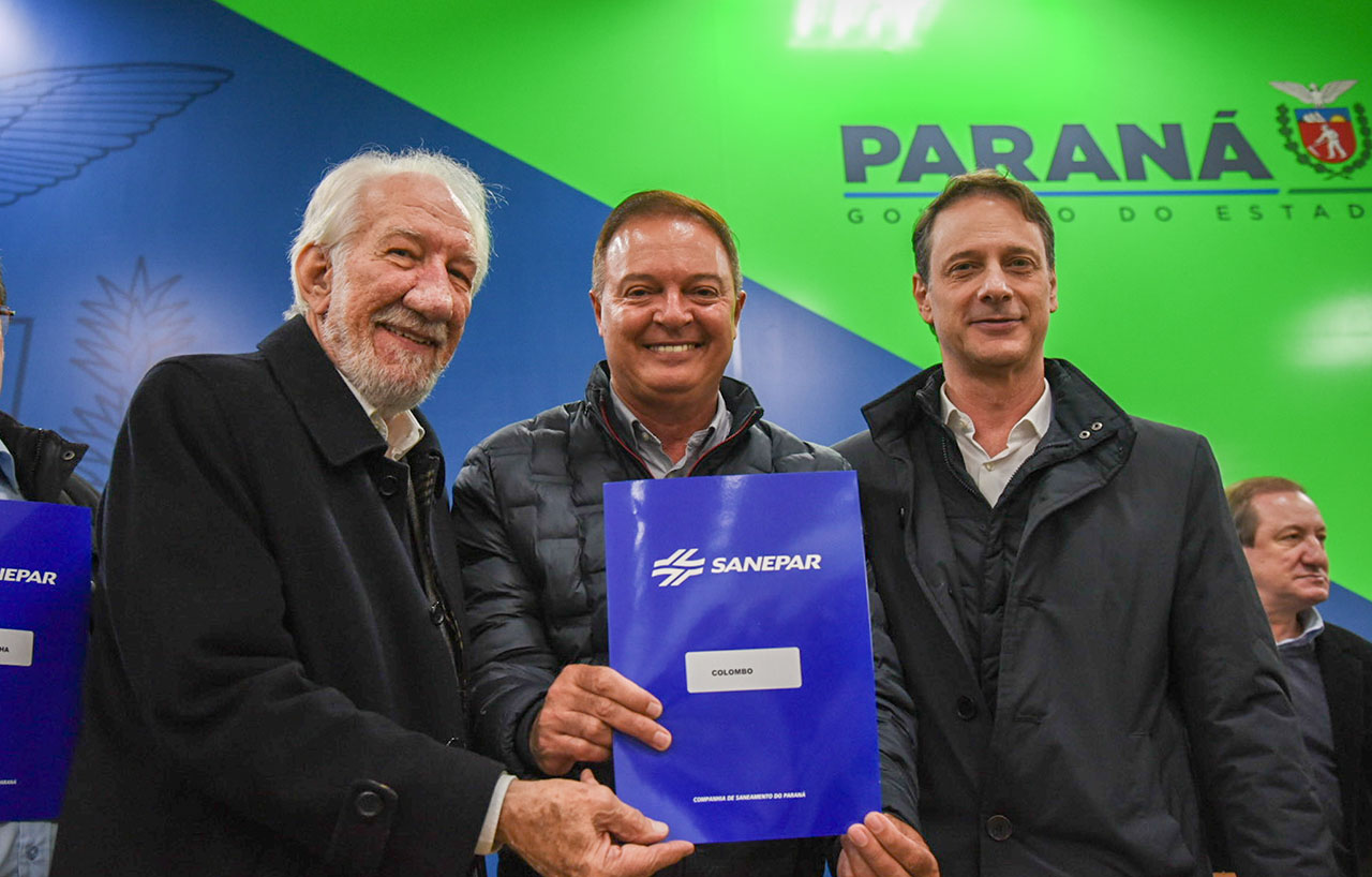 O prefeito Helder Lazarotto e o governador do Paraná, Carlos Massa Ratinho Junior, assinaram na manhã desta quarta-feira (01), no Palácio Iguaçu, o convênio de ampliação da rede de distribuição de água, que irá beneficiar 300 famílias colombenses dos bairros Vila Machado e Vila Caetano.