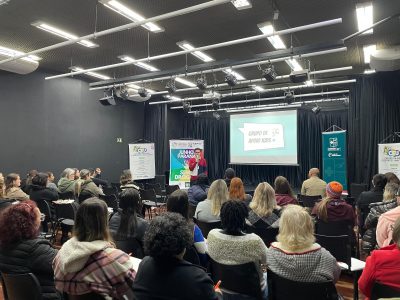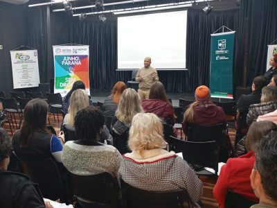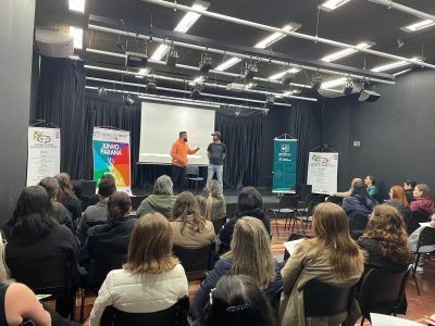 Como parte do momento formativo os participantes tiveram uma palestra com Lucas Recuero, representante da Cruz Azul no Brasil, instituição referência em prevenção e cuidado no contexto do uso de substâncias. Lucas compartilhou estratégias práticas de atuação preventiva no ambiente escolar, destacando a importância do papel dos professores na formação de uma geração mais consciente e resiliente.
