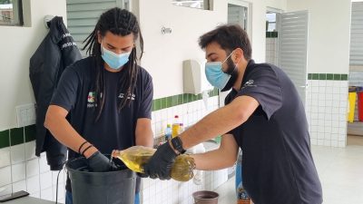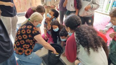 Entre as iniciativas estão oficinas de compostagem doméstica e de sabão ecológico, nas quais os participantes aprenderam a transformar resíduos em produtos úteis, como composteiras caseiras e sabonetes feitos com óleo de cozinha usado. Os sabonetes produzidos pelos alunos serão vendidos em bazares escolares, promovendo também a economia sustentável e o senso de responsabilidade coletiva.