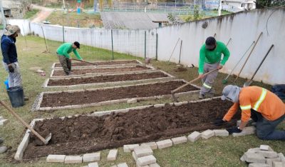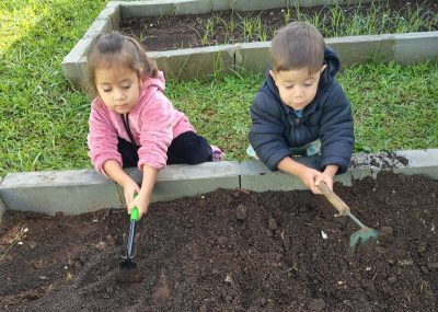 O Departamento de Educação Ambiental reestruturou hortas pedagógicas, auxiliou as escolas na preparação de canteiros, adubação, fornecimento de mudas e substrato, incentivando o contato dos estudantes com o cultivo de alimentos e práticas que respeitam o ciclo da natureza.